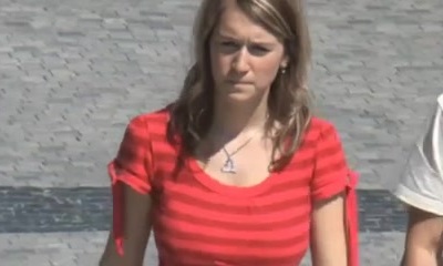 A beautiful blonde nubile from Germany gets her throat filled with warm jizm