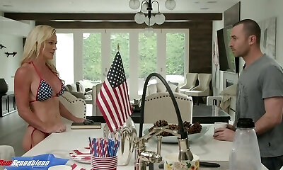 Patriotic redheaded bathing suit babe bares all and fucks a enormous cock