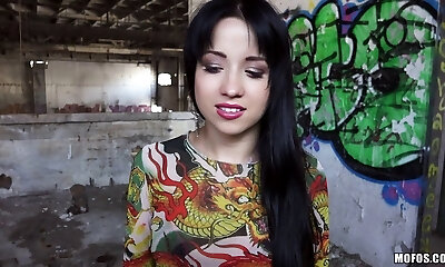 Colorific Russian girl sucks a cock in public for some currency