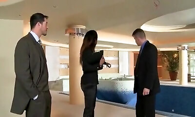 The guy and his homie, businessman in office gave chick double penetr...