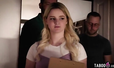 Stepbrother Shares Petite Girlfriend with Social Worker to Keep Their Secret