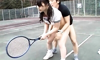 Dulce de aspecto asiático, nena extiende las piernas y adquiere los dedos