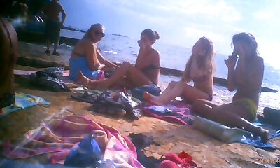 muchas de todas las putas desnudas están preparadas para el voleibol de playa por alegría