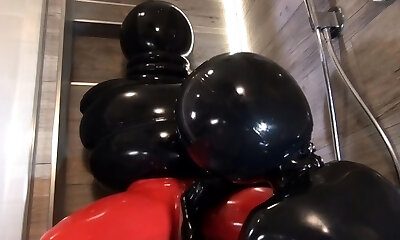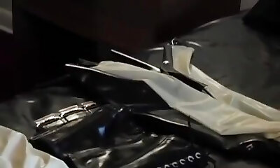 Dude in latex suit gets fucked by a filthy shemale Nyobi