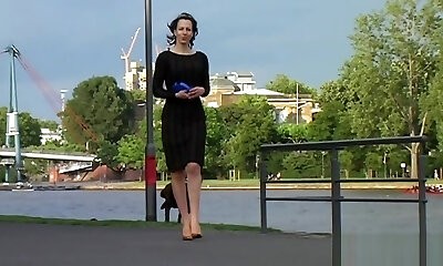 Captivating brunette Shazia flashes her amazing body in the street