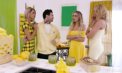 Blonde MILF threeway with big asses and double blowjob roleplay