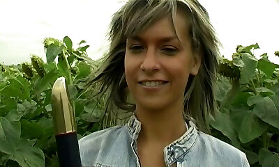 Torrid blond head Diana Gold is active with teasing her Czech hairy pussy