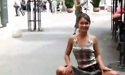 Girl flashing and urinating in public part 1