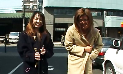 Two skanky Asian exhibitionists hooked up with 2 guys