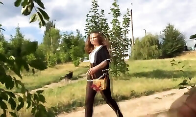 Horn-furious village young chick exposes her sexy thighs while pissing outdoors