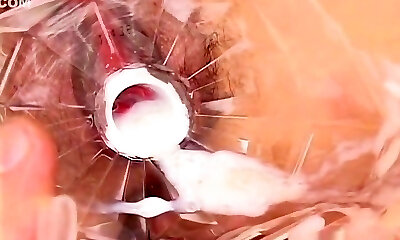 Close up video of small milk cans Ziva inserting a glass dildo in her cunt