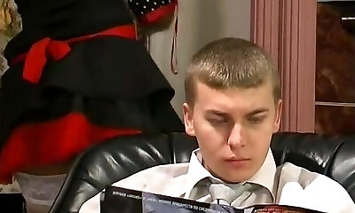 Ultra-kinky tall and wonderful maid gets her anus brutally nailed by lewd host
