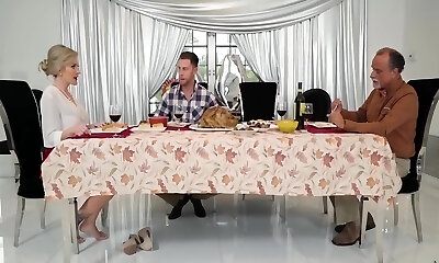 Evelin And Seth Sharing Big Man Sausage In Kitchen On Thanksgiving