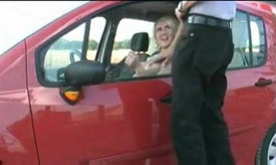 Slender Russian light-haired fingered by random bystander on her driver's seat